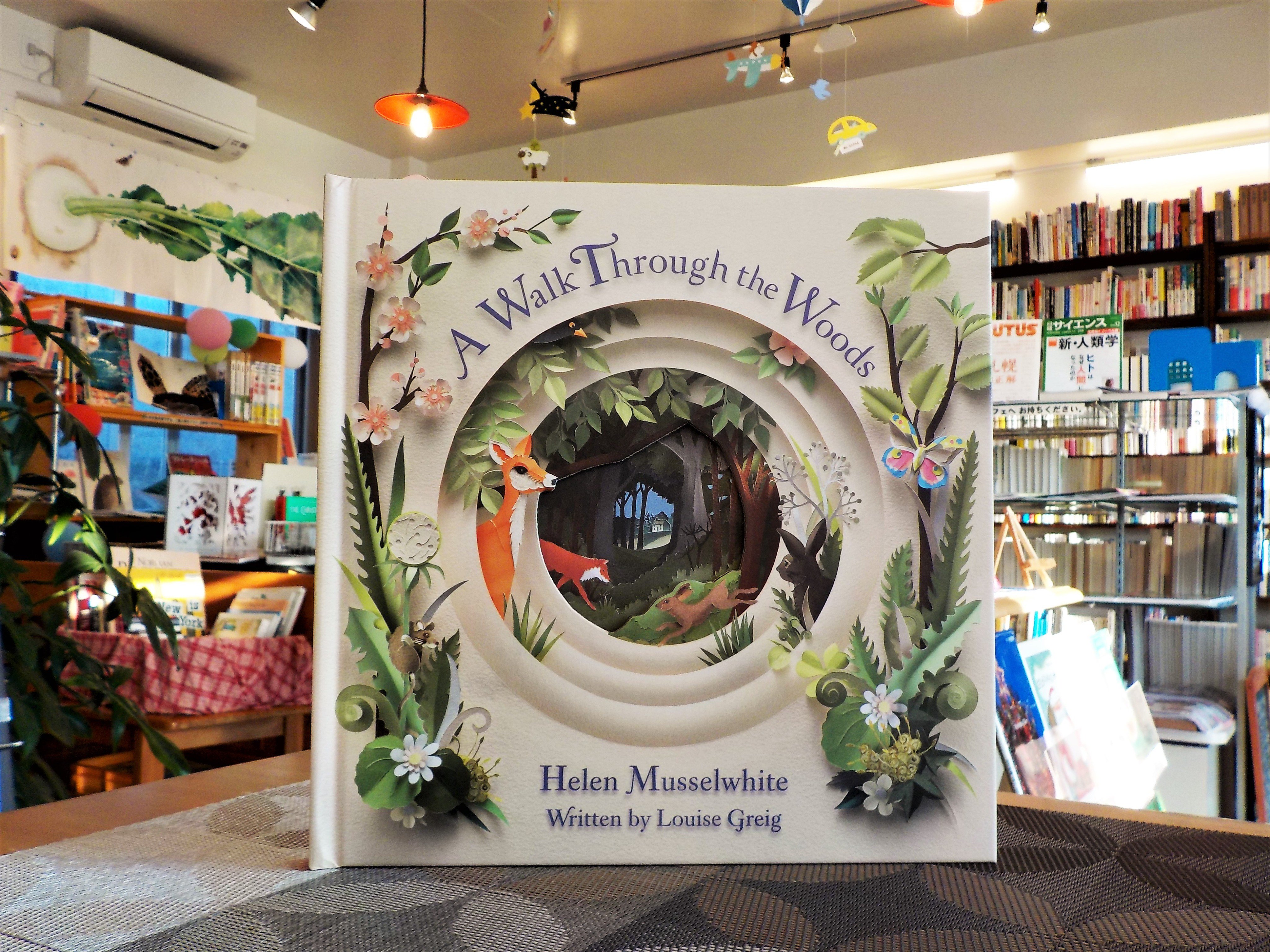 こんにちは~暑さにめげずくじらブックス営業中!やっぱり沖縄らしいね、という気持ちと、早く涼しくならないかなあ、という気持ちが交互に生まれては消えていきます…秋よいずこ★今日のオススメ本★Helen Musselwhite「A Walk Through the Woods」真ん中に穴が開いた切り絵風しかけ絵本(洋書)(続 pic.twitter.com/Y8tt1MOACT
