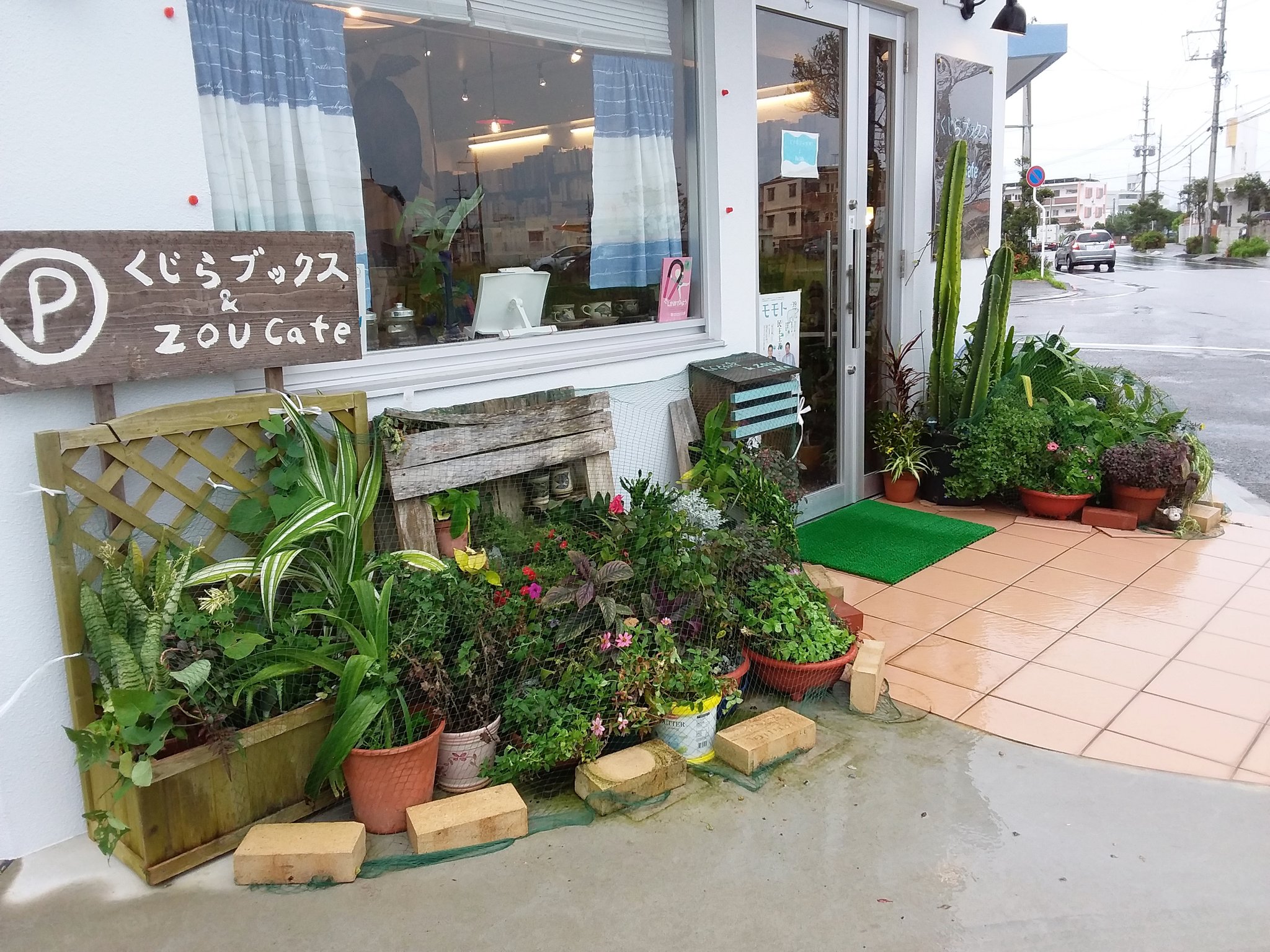 こんにちは~吹く雨風に台風を感じる沖縄・八重瀬町、くじらブックス本日も営業中!雨に濡れつつ花木に防風ネットをかけました。夜暴風域に入る可能性もあるとのこと。県民の皆さま今のうちに対策を~!本州の皆さまもどうぞお気をつけて☆本日少し早めに閉店するかもしれません。何卒ご了承ください☆ pic.twitter.com/0Zl6bOcxeF