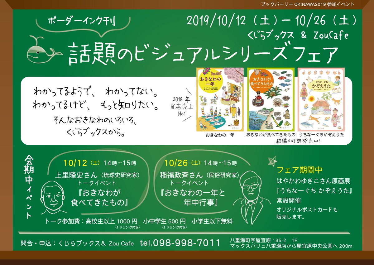ボーダーインクフェア記念・連続トークイベント、次回は10月26日(土)14時~【稲福政斉さん「おきなわの一年」】沖縄の年中行事やしきたりについて、楽しく勉強できますよ。ご参加ご予約引き続きお待ちしております~ pic.twitter.com/JXmWvdwMMp