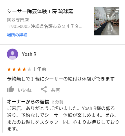 Google☆☆☆☆4つ星の口コミを頂きました!