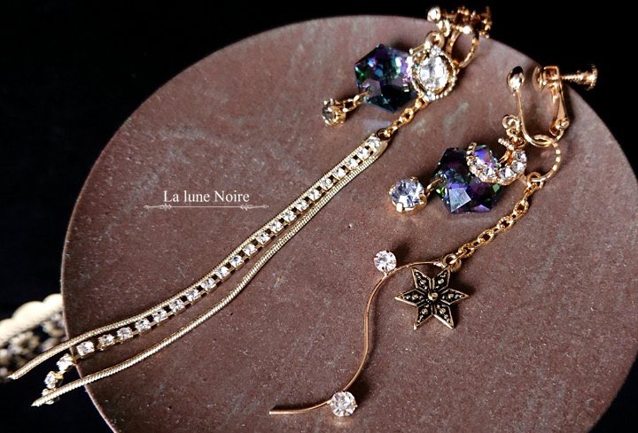 「千夜一夜物語」をテーマに、輝く月やガラスチャーム、上品に揺れるラインストーンがあしらわれたピアス/イヤリング✨