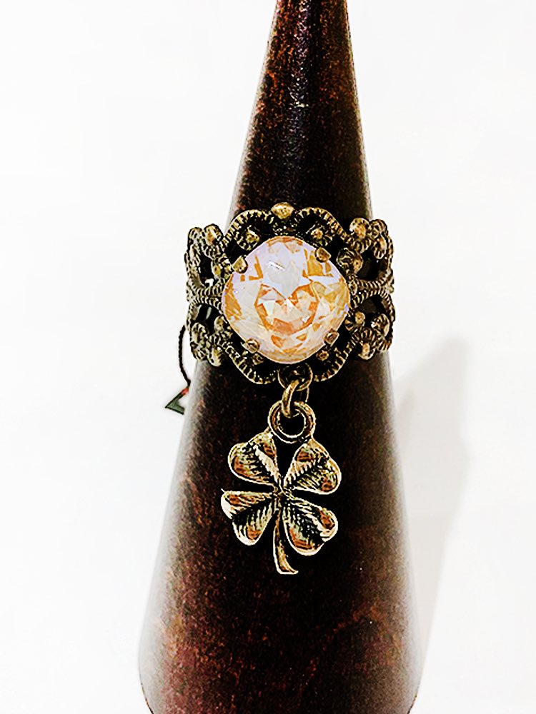 ✴︎煌びやかなスワロフスキーと四つ葉のアンティーク風リング🍀