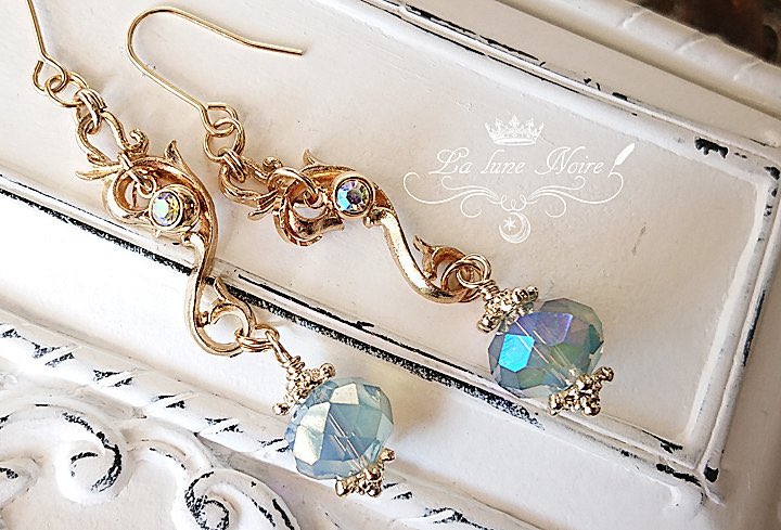 ✴︎オパール色のビジューが上品に揺れます。優雅な唐草のチャームには輝くクリスタルも一粒。シンプルながらも洗練されたデザイン💠