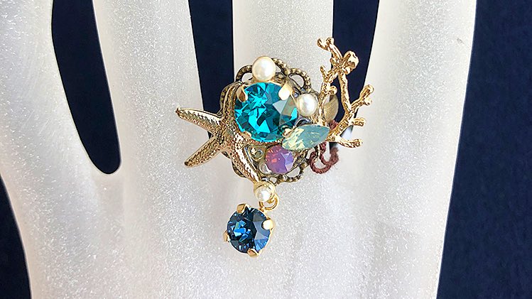 ✴︎海の生物をモチーフにした物語性のあるリング🐠✨海底に沈んだ宝箱のように、キラキラが沢山詰め込まれています🐚✨