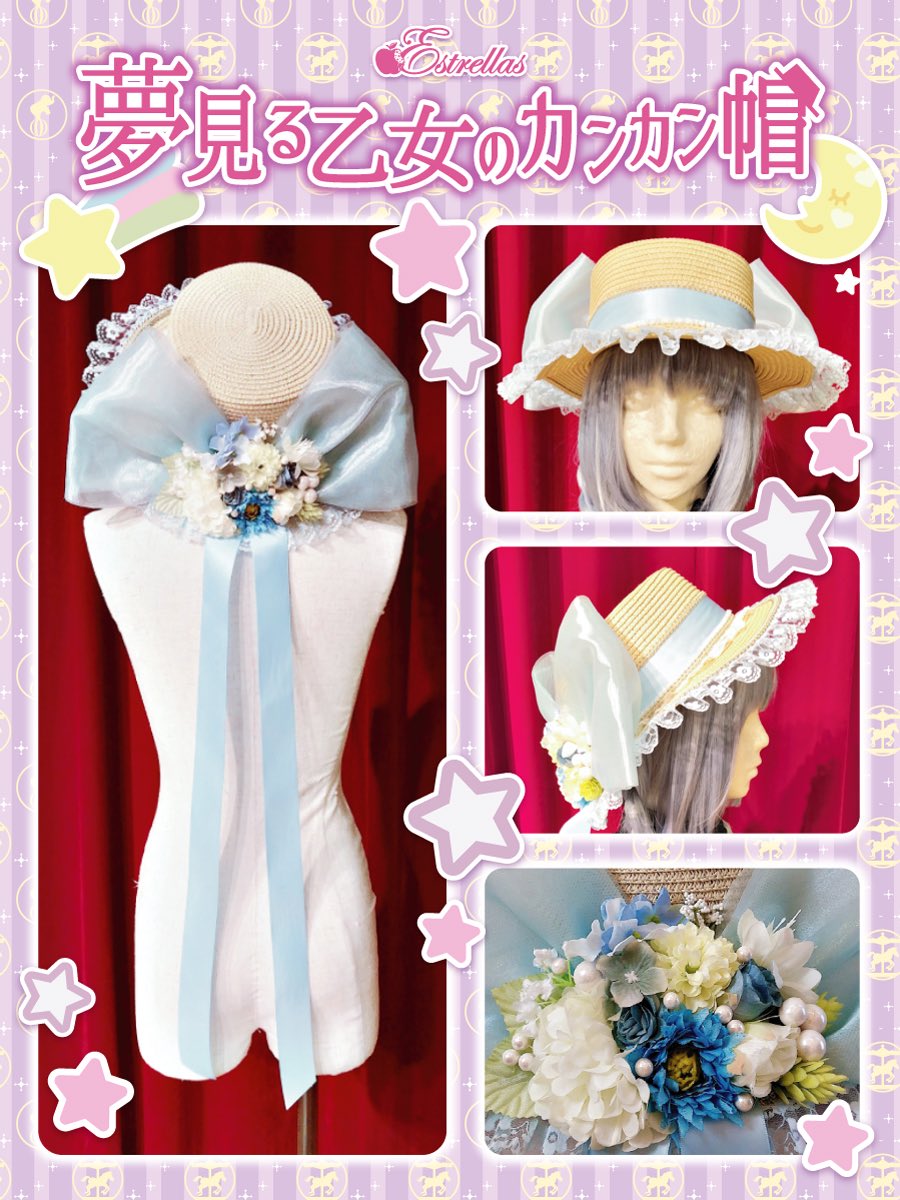 🌟最新作のお知らせ🌟👒最新作👒【✨💐夢見る乙女のカンカン帽🌼✨】¥9,900-(税込)ピンク/イエロー/ブル... [Twitter]