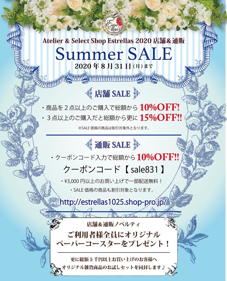 当店にて開催中のサマーセールを今月末まで延長&通販サイトでも開催致します❣️❣️