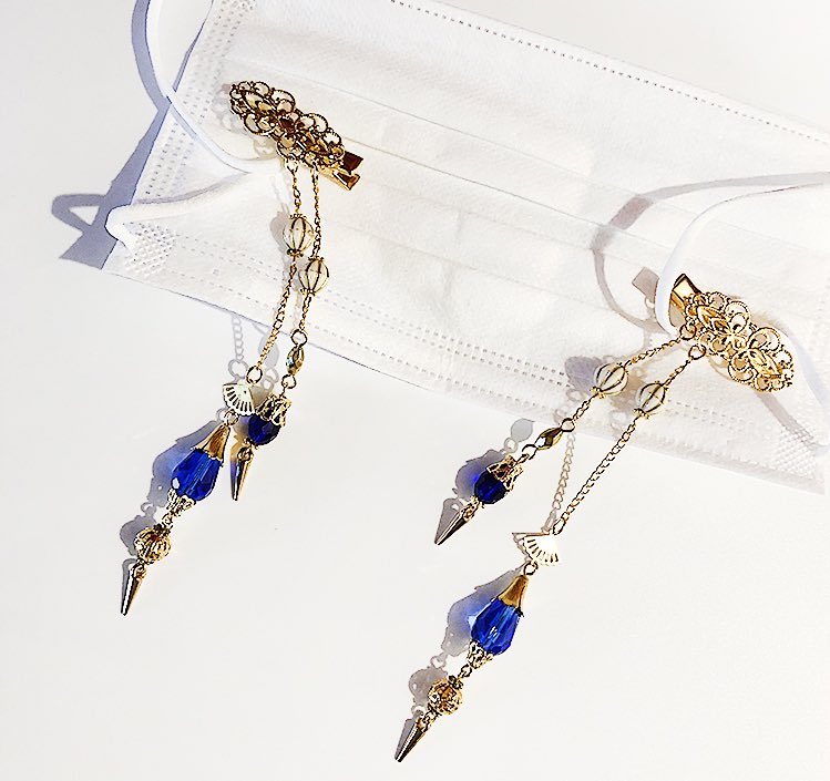 🌟耳飾りのように小振りな #宝珠のしずく はクリップにマスクゴムを直接挟んで髪やウィッグに固定する #マスク留め です... [Twitter]