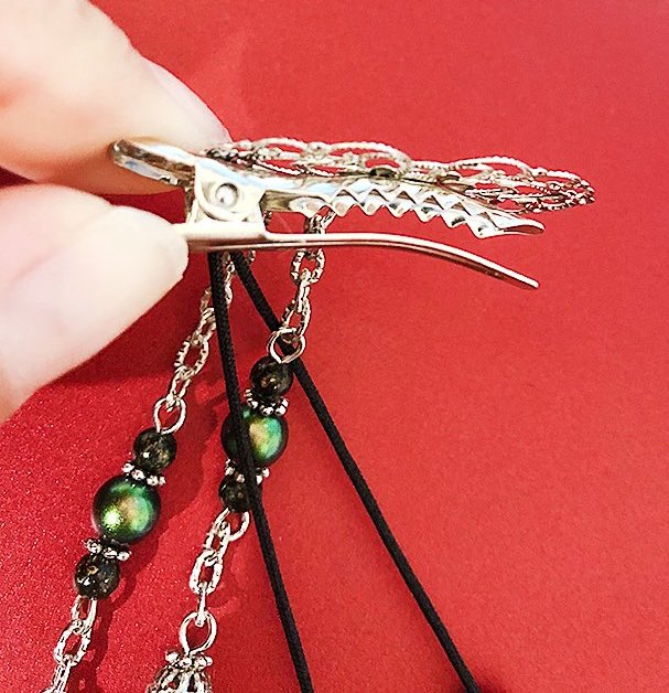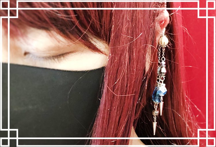 🌟耳飾りのように小振りな #宝珠のしずく はクリップにマスクゴムを直接挟んで髪やウィッグに固定する #マスク留め です✨