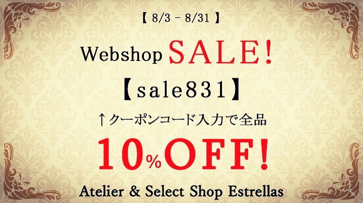 クーポンコード【sale831】とご入力で全アイテム10%OFF❣️!!