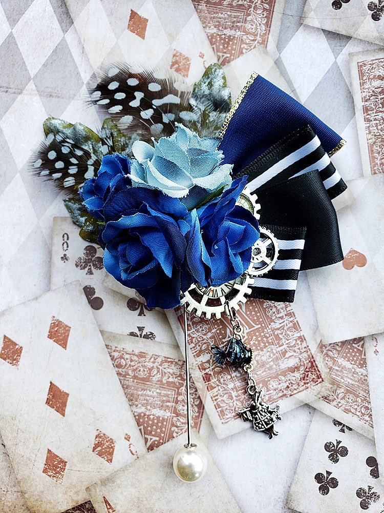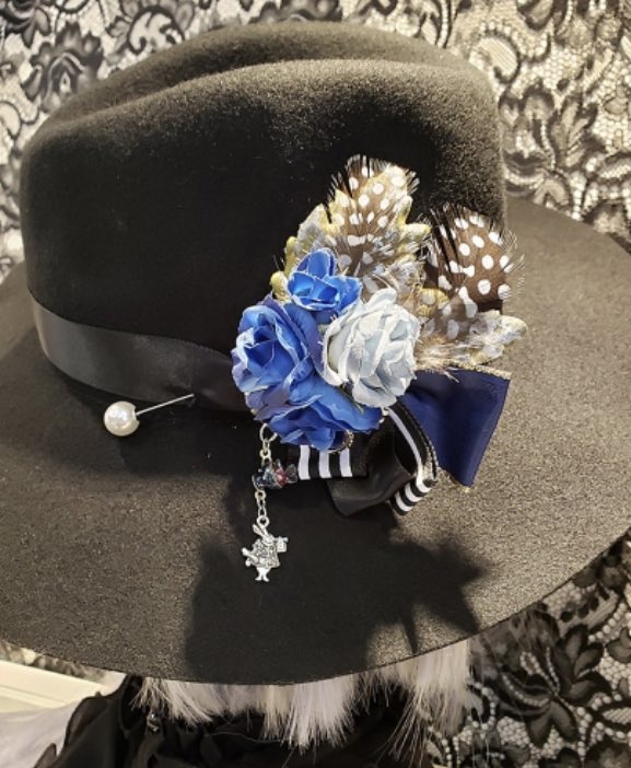 🦋 #ゴシックアリス展🦋💎出展作品💎・青薔薇のアリス ハットピン¥3,200-(税込)青い薔薇やドット柄の羽根、... [Twitter]