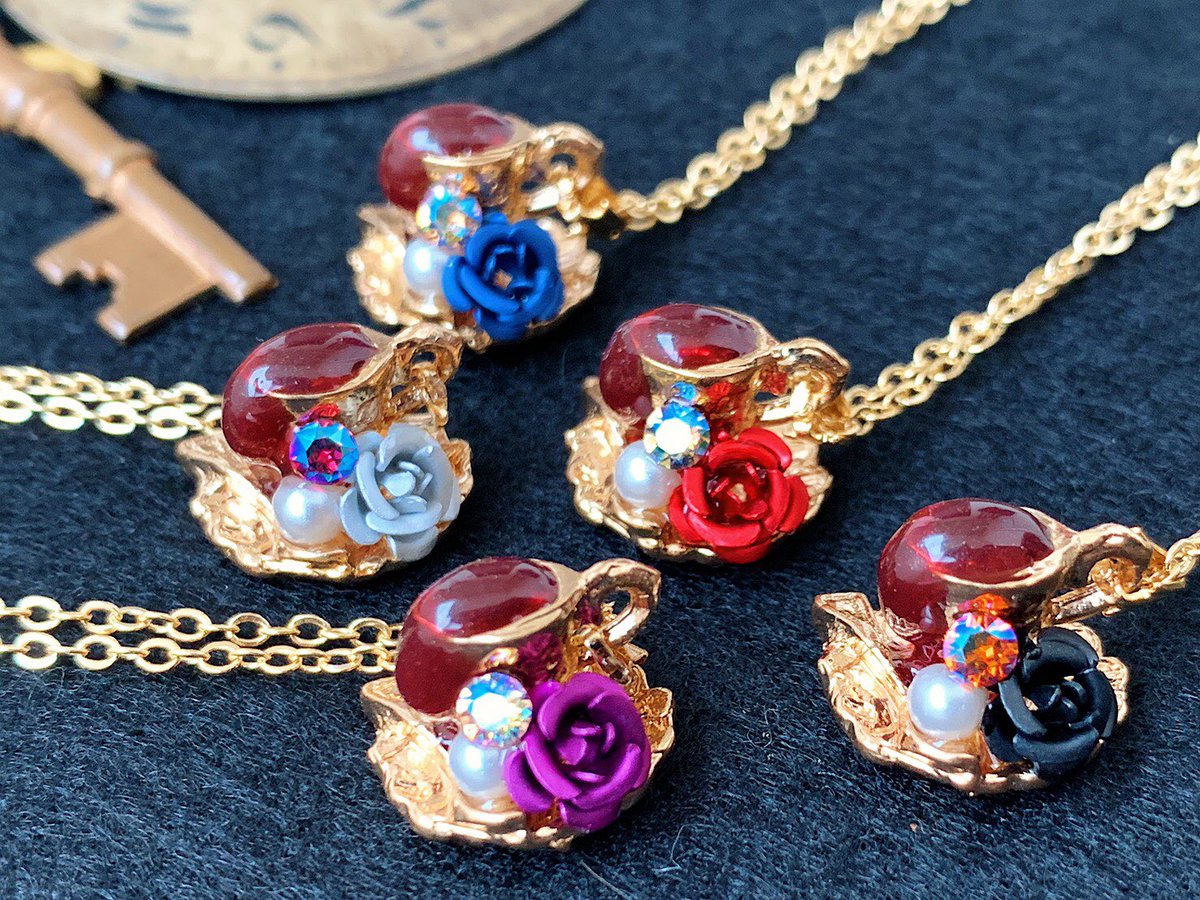 ミニチュアのように小ぶりで可愛らしいティーカップのネックレス。