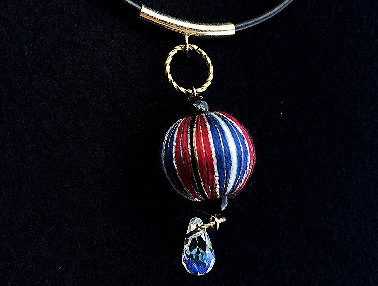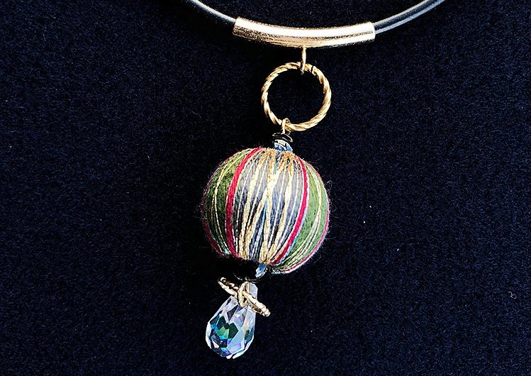 糸を巻きつけて制作された美しい模様の巻き玉のチョーカー。