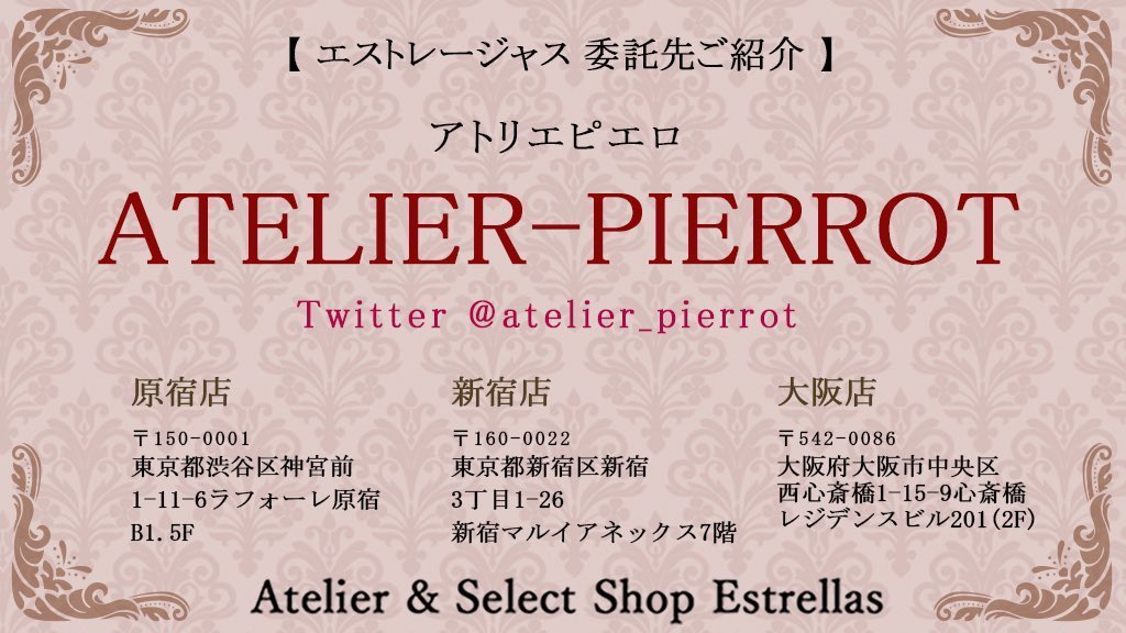 🌹委託先のATELIER-PIERROT @atelier_pierrot 様にてエストレージャスのオリジナルアイテムを豊富にお取り扱いして頂いております❣️