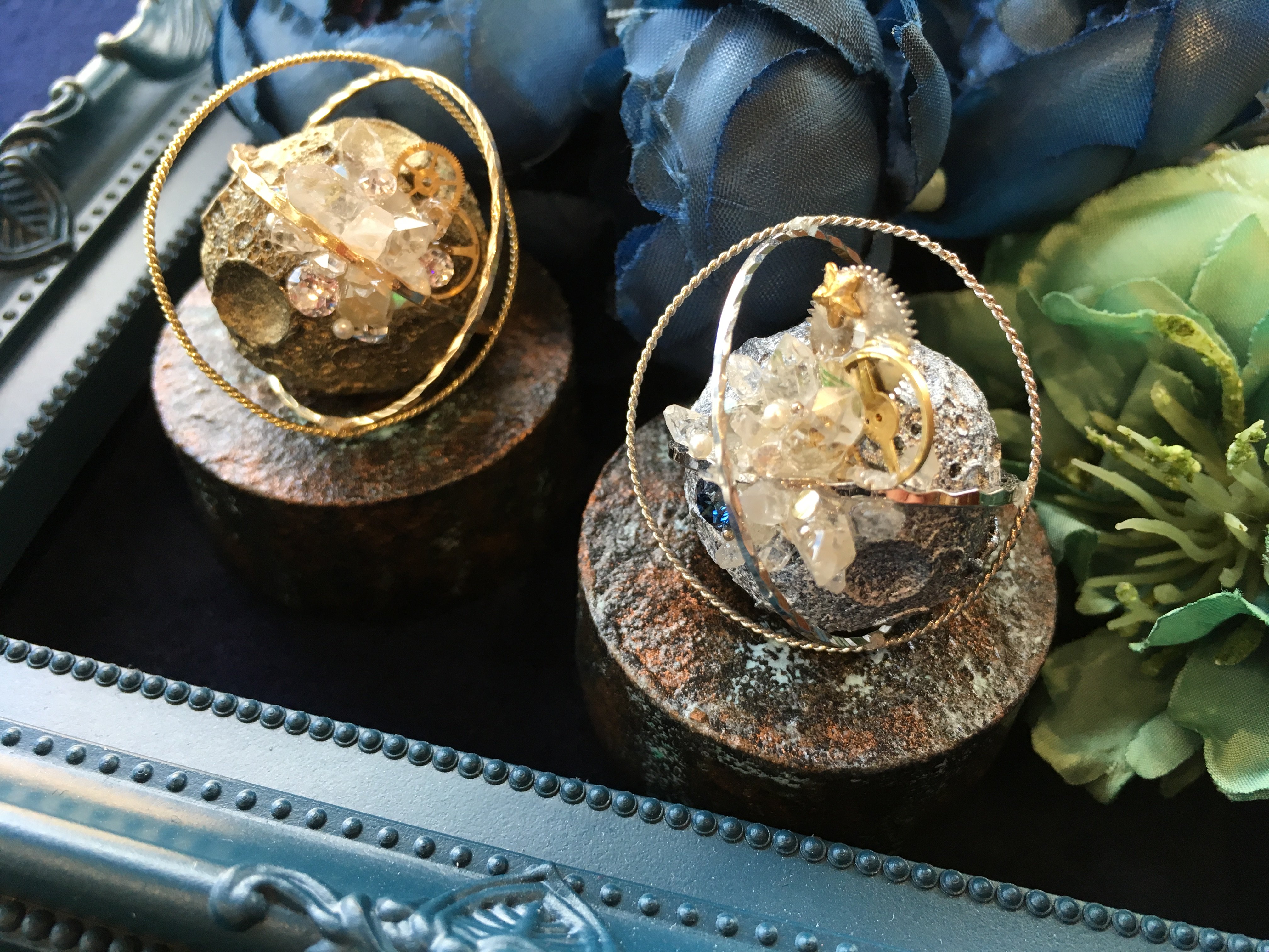@mizuki2s [ 模造満月灯 ] 水晶や歯車、ガラスストーンで装飾された美しい月のオブジェ。クレーターの凹凸や、錆びたような風合いのある土台など緻密に造られています。 傾けると点灯し、淡い光がこぼれます。 ◆ Webshop ◆ estrellas1025.shop-pro.jp/?mode=srh&sort… pic.twitter.com/uTUXJOAPgz