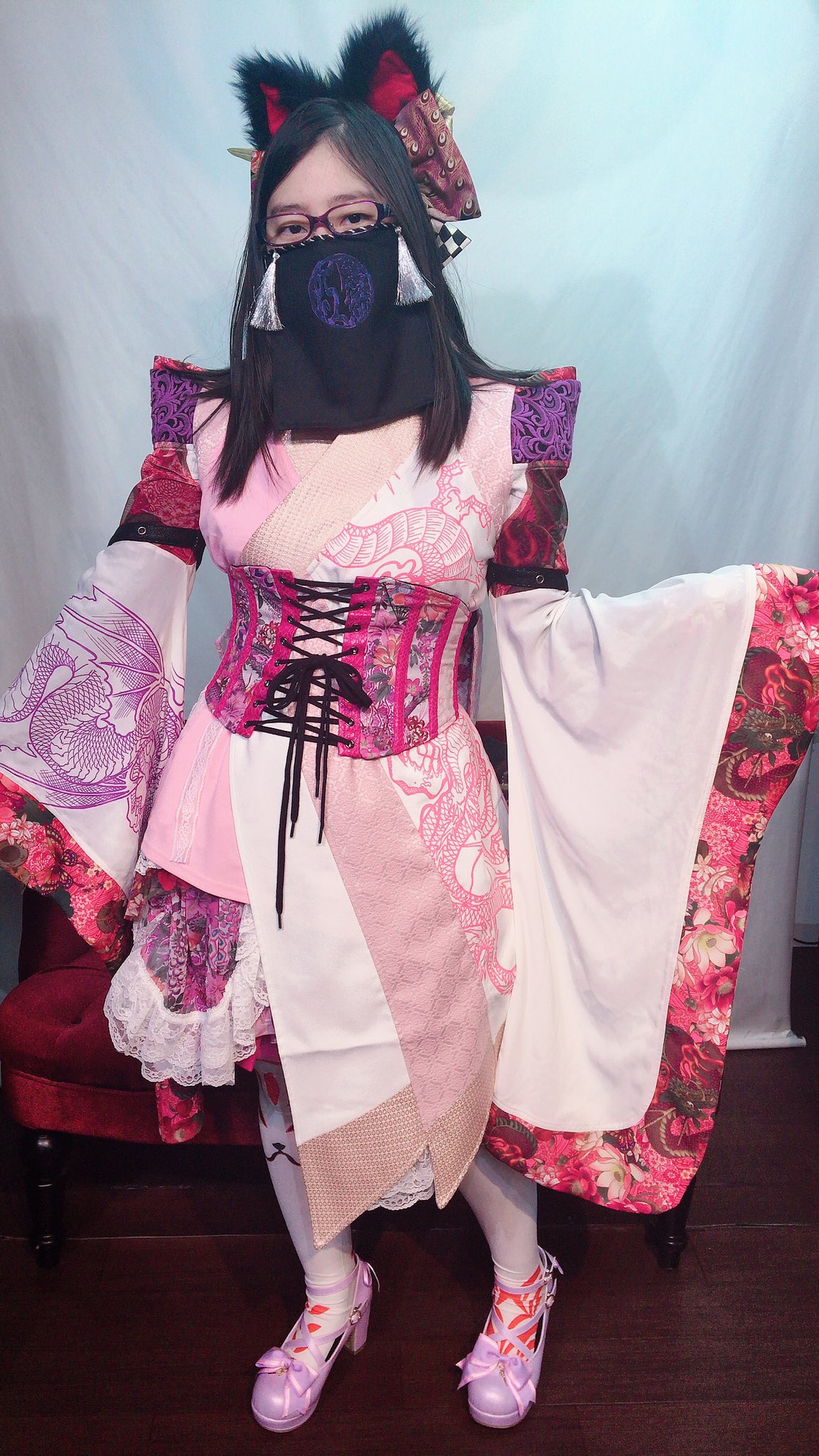 着てきたコーデに合わせてみたら… くノ一風にヾ(o゚ω゚o)ノ゙✴︎ どんどんコーデの腕をあげるミミちゃん