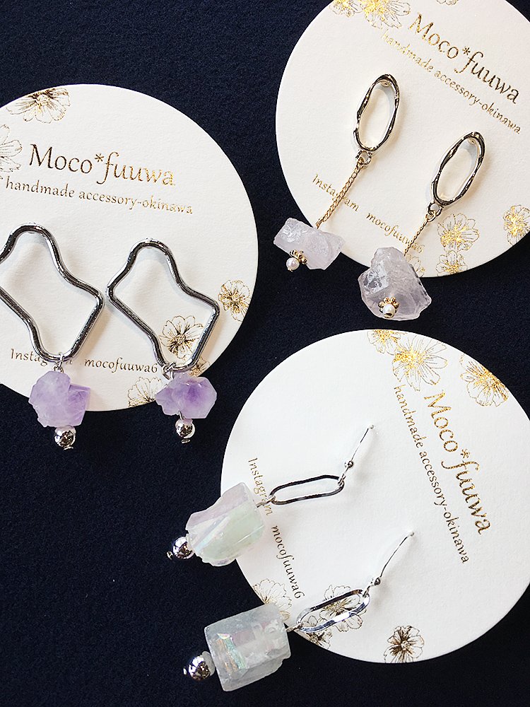 お取り置き可能です♪ ★可憐なローズクォーツピアス ¥1,836- ★うねうねシルバー アメジストピアス ¥1,728- ★クールな水晶ピアス ¥1,620- (画像上から/税込価格) pic.twitter.com/jKwn5ml9Cr