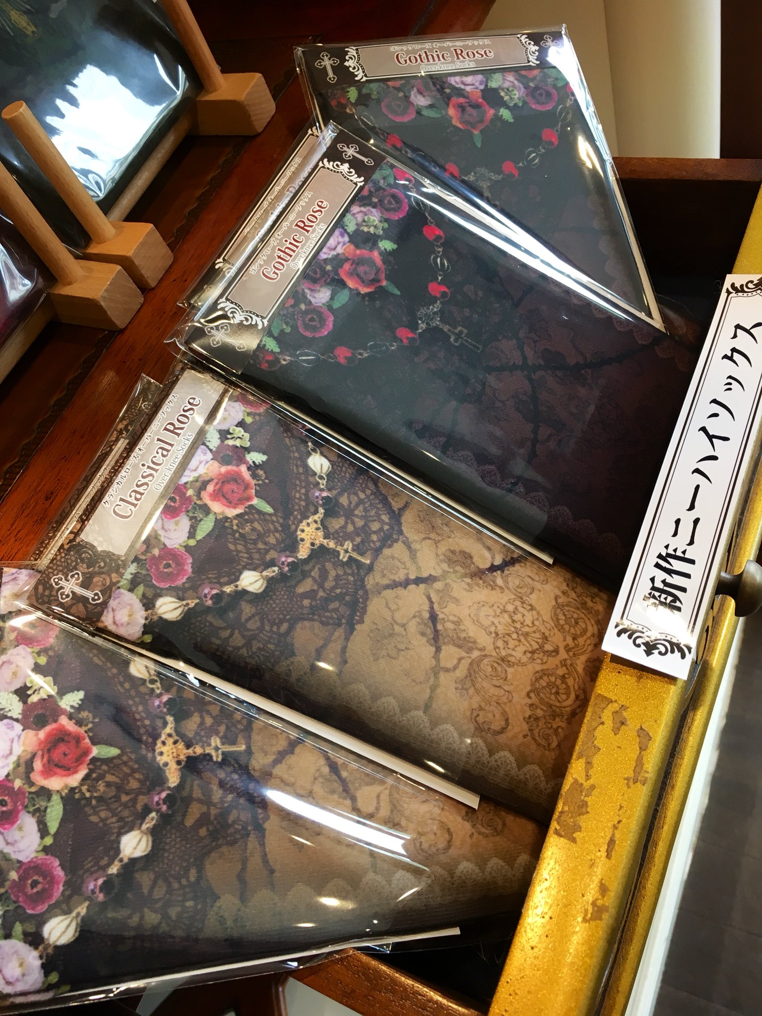 ★こんにちは、エストレージャスです。本日より店頭にてニーハイソックス ゴシックローズ/クラシカルローズ ¥3,456-(税込)