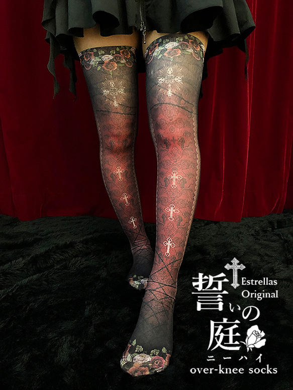 【オリジナルアイテム紹介】 誓いの庭ニーハイソックス/赤 ¥3,200+税 ゴシックな装いにぴったりの、薔薇と十字架... [Twitter]