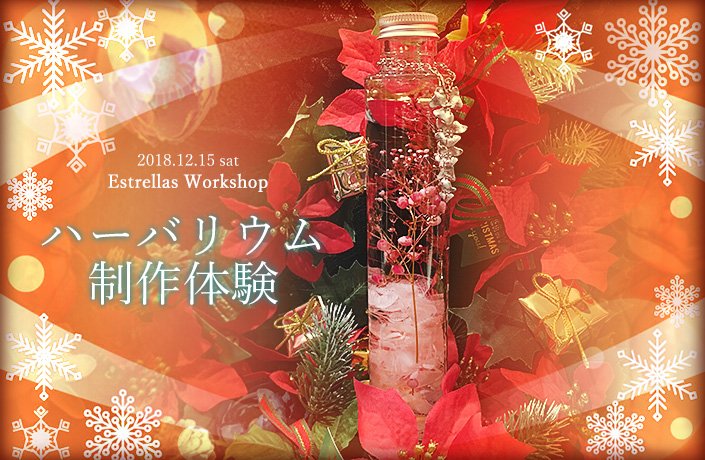 【ハーバリウムWS日程】※要予約です! ★開催日時:12/15(土) エストレージャス2階スタジオ ・時間 ①13時~14時 ②15時~16時 ③17時~18時 ④19時~20時 ★参加費 2,800円(材料費等全て含む) ※ポイントカードお持ちの方とそのお連れ様は300円割引になります。 pic.twitter.com/EHXnfOzBT1