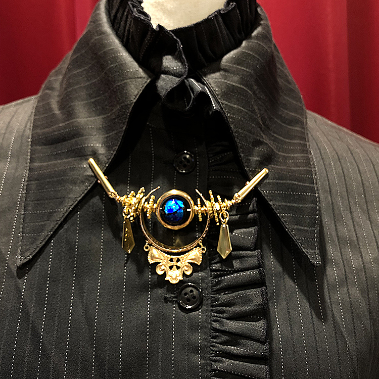 深い海のように美しい蛍硝子をコアに持つストールクリップ。襟元やデコルテの装飾品として、ネックレス代わりの着用もお勧めです。