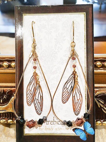 お取り扱い中✨翅のドロップフープピアス ¥2,000-繊細なフープに翅が揺れる上品なピアス。普段使いからお呼ばれまで様々... [Twitter]