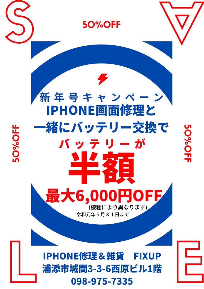 iPhone画面修理でバッテリーが半額で交換出来ます! バッテリーの寿命は約1年半〜2年なのでこの機会に交換しちゃいましょう♪#iPhone修理#サンパーク通り#ぐすくま#半額#バッテリー pic.twitter.com/kgwfkNrVTV – 場所: 浦添ショッピングセンター