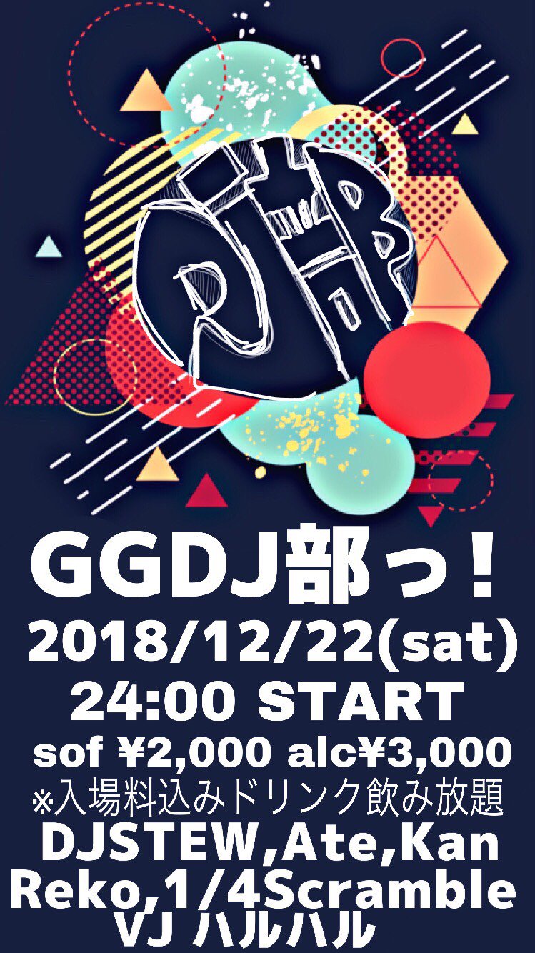 ついにフライヤーが完成しました! 来てますよ波がきてます! てなワケで再度告知させていただきます! 12/22はGGDJ部です! 当日はあまねさん主催の「#びまない」と同じ日です! こちらDJ陣共にVJも全力で頑張るのでハシゴ待ってますよ!#GGDJ部 pic.twitter.com/B2CGK5OF85