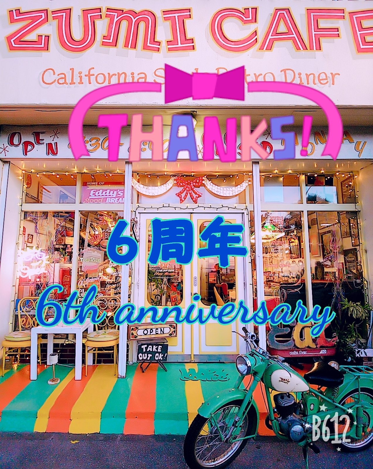 ZUMICAFEは今日で6年目を迎えました〜沢山の人達が支えてくれてるお陰です!!! ありがとうございまーす! 6年目も笑顔いっぱい、楽しみたいと思います