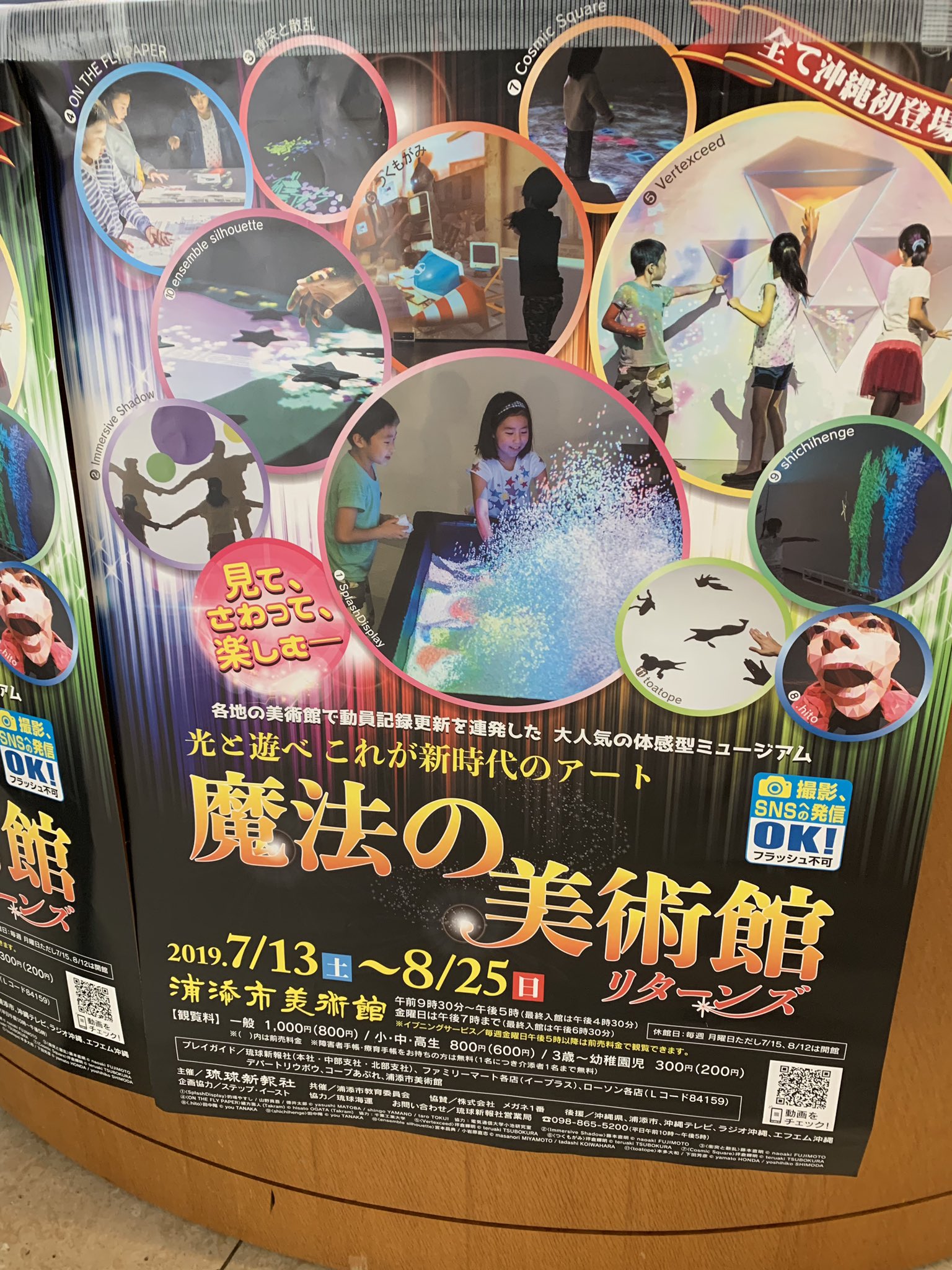 本日は浦添市美術館で開催中の魔法の美術館。まだ最初の部屋ですがみんな夢中です小さい子から遊べる感じ♪ pic.twitter.com/y7WhYLYDZG