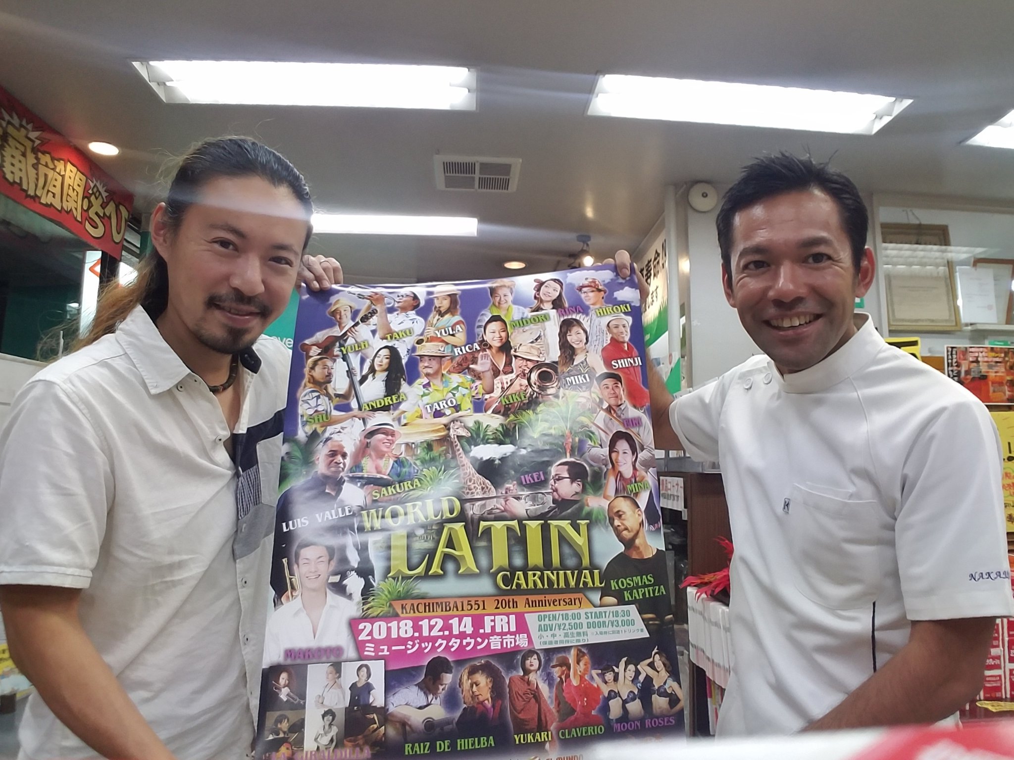 カチンバのシュウさんご来店。 @ミュージックタウン音市場@otoichiba330 2018.12/14(金)18時Open!! “#worldlatincarnival” 開催。#KACHIMBA1551 さん20周年とのこと。おめでとうございます! この日は熱い熱いラテン音楽イベントになりそうです☆ pic.twitter.com/kHrk0y7djC