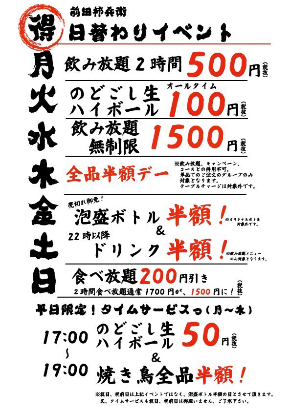 最近投稿サボってました すみませんm(_ _)m 本日お席ほぼ空いておりませんが僅かながら空きがございます ご予約はお早めにお願いします 週間イベントの方も引き継ぎよろしくお願いします٩(ˊᗜˋ*)و なお、7月28日日曜日は系列店全店休業となっておりますのでご理解、ご協力よろしくお願いしますm(_ _)m pic.twitter.com/KGjABxCLAj