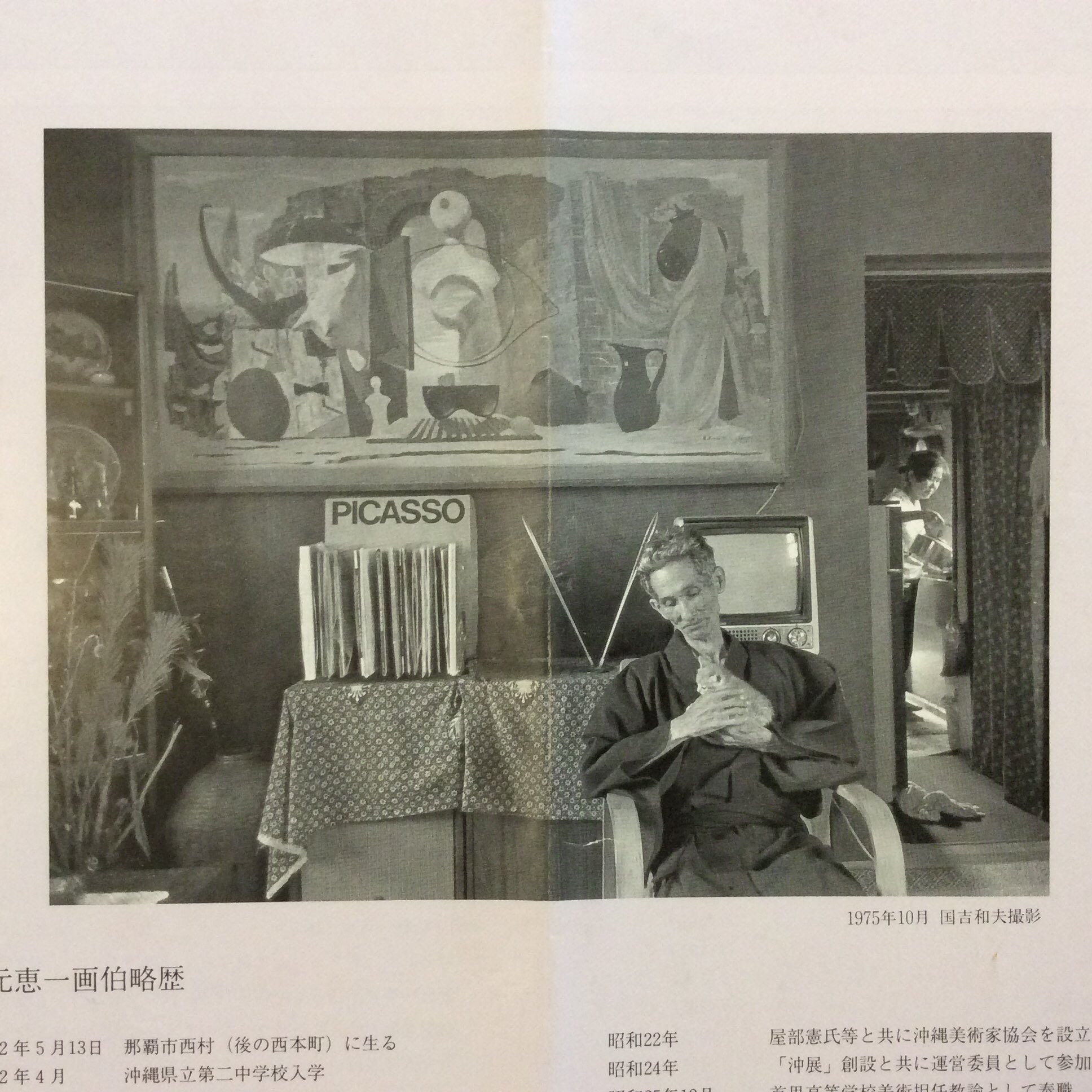 1993年の那覇市民ギャラリーでの山元恵一回顧展のリーフレットより。これ、とても好きな写真。撮影は国吉和夫さん。 pic.twitter.com/O18ITBGpHf