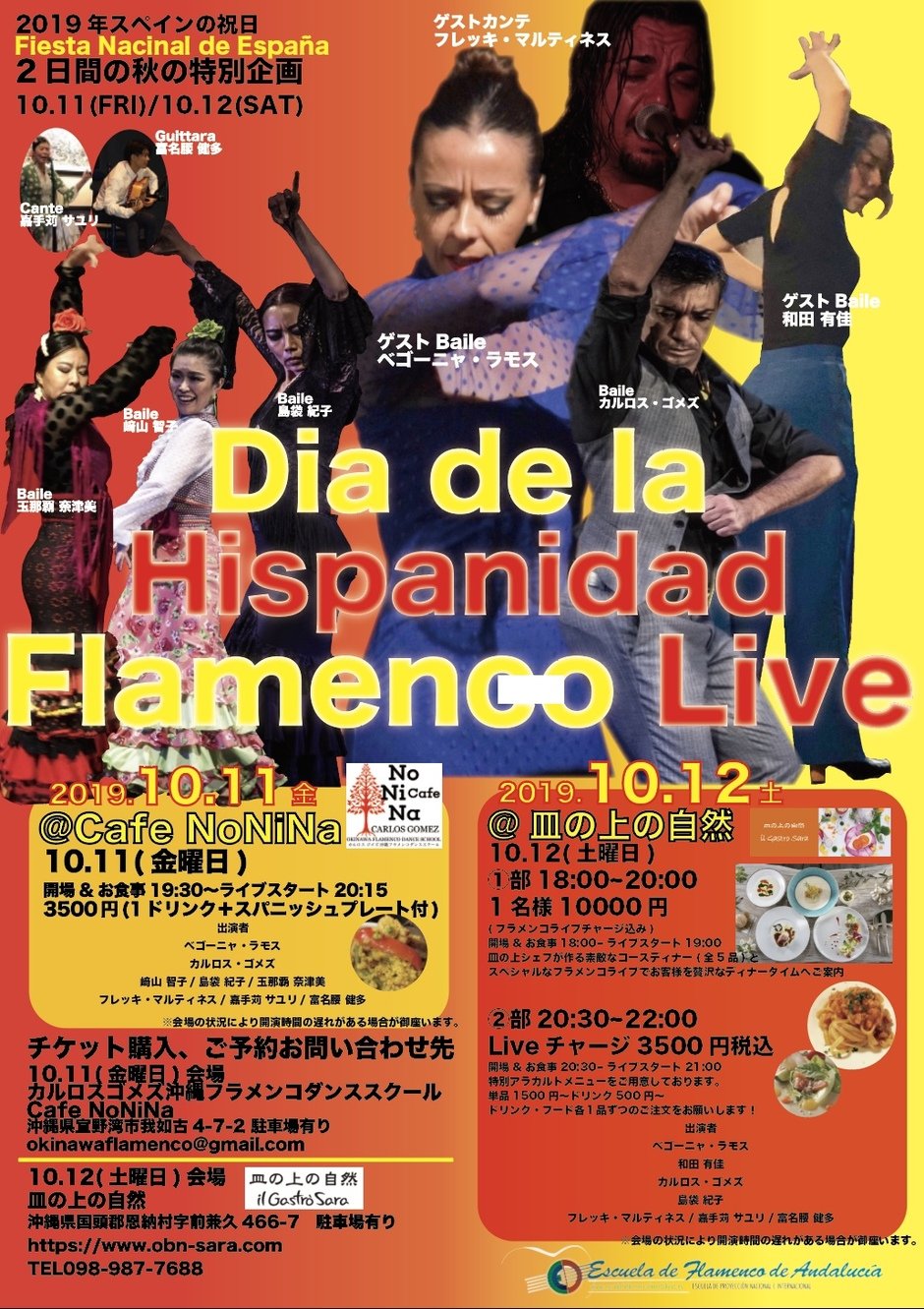 2日目のゲストバイレには和田有佳さんが出演!!ゲストカンテは!セビージャ出身のフレッキ・マルティネスさん。ギターリストには沖縄出身の富名腰 健多さん!沖縄で活躍されているアーティストとスペイン人アーティストによるFiesta Nacional de Españaスペインの祝日、秋の特別二日間のFLAMENCO LIVEをお見逃しなく!