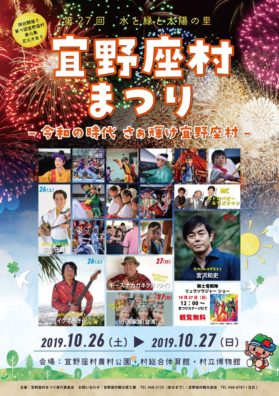 | お問い合わせ | 宜野座村まつり実行委員会(宜野座村観光商工課内) TEL:098-968-5125(前日まで) 宜野座村観光協会 TEL:098-968-8787(当日) |