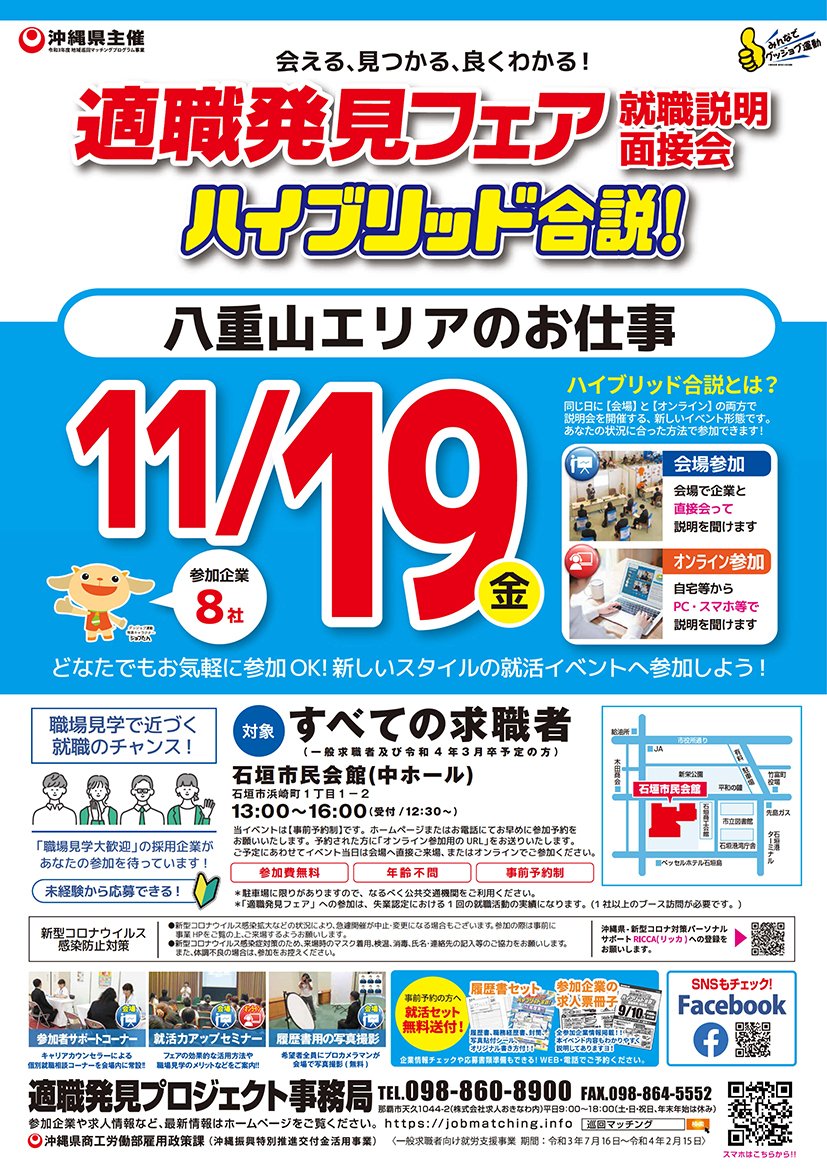 適職発見フェア ハイブリッド合説!就職説明・面接会 第3回 ~八重山エリアのお仕事~