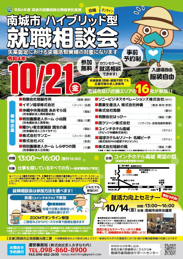 問合せ先/運営事務局(株)求人おきなわTEL:098-860-8900