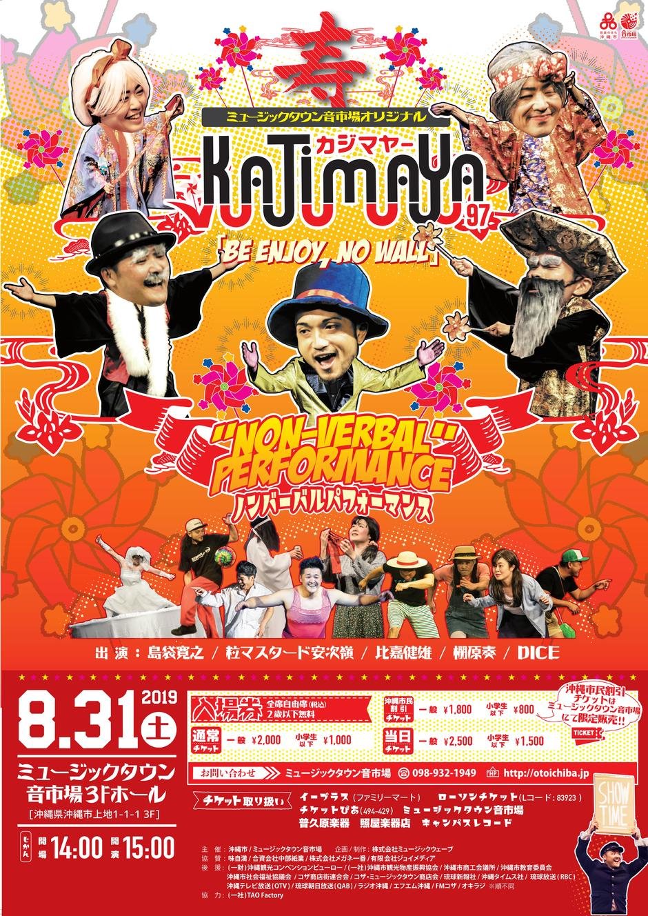 | 参加費 | 前売:【通常チケット】一般2,000円 小学生以下1,000円 【沖縄市民割引チケット】一般1,800円 小学生以下800円 /当日:一般2,500円 小学生以下1,500円 ※全席自由、2歳以下無料、消費税込 ※沖縄市民割引チケットはミュージックタウン音市場事務所にて限定販売 |