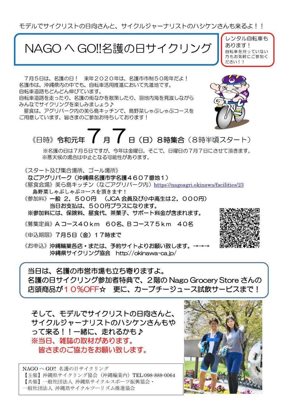 (今年の名護の日は金曜日なので、サイクリングは、日曜日の7月7日開催になります。)